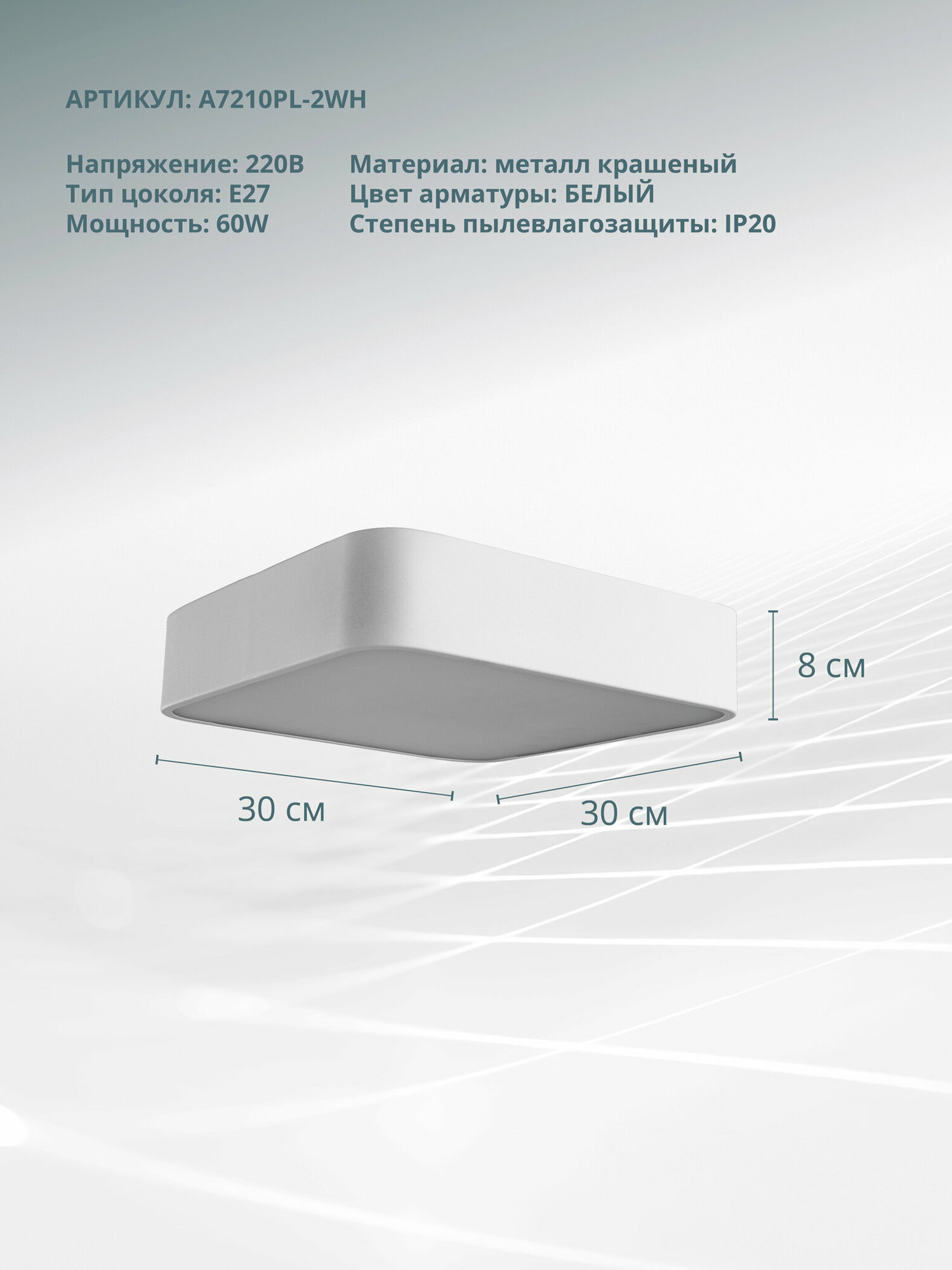 Светильник потолочный белый Arte lamp A7210PL-2WH Cosmopolitan 300*300мм 2*E27