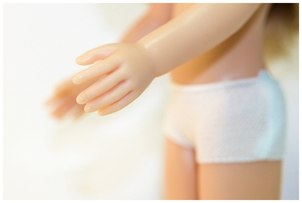 | Плюсы: | Куколка красивая, нежная. Волосы мягкие, хорошо прошиты. Глаза зеленые, с ресничками. Веснушки мелкие, аккуратные, на лице не сильно выделяются. Ножки одинаковые, кукла стоит на них. |