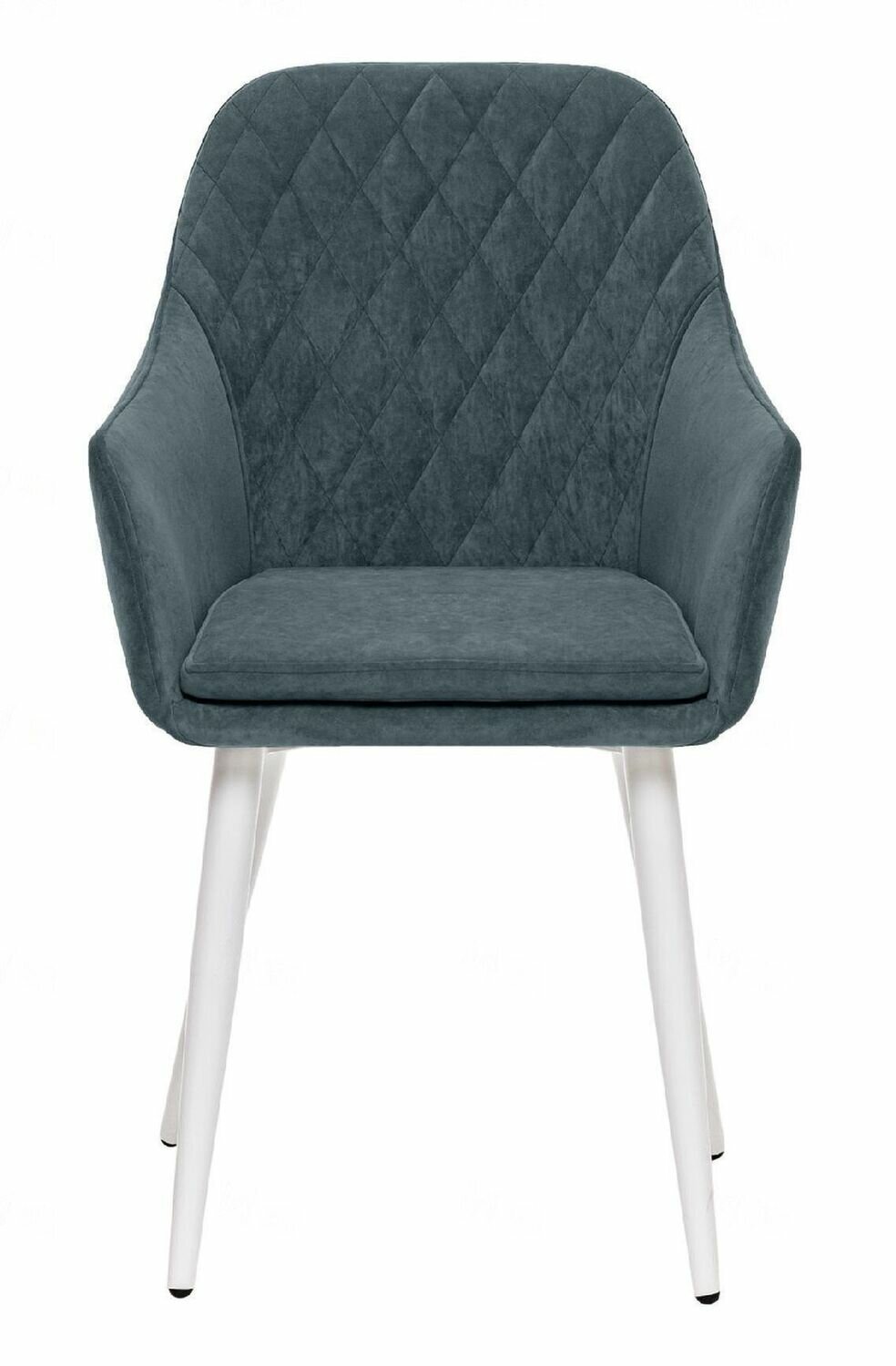 Стул с подлокотниками Слим велюр синий, каркас белый