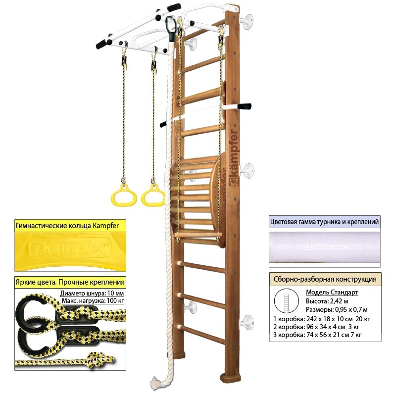 Шведская стенка Kampfer Union Ceiling (№1 Натуральный Стандарт белый турник)