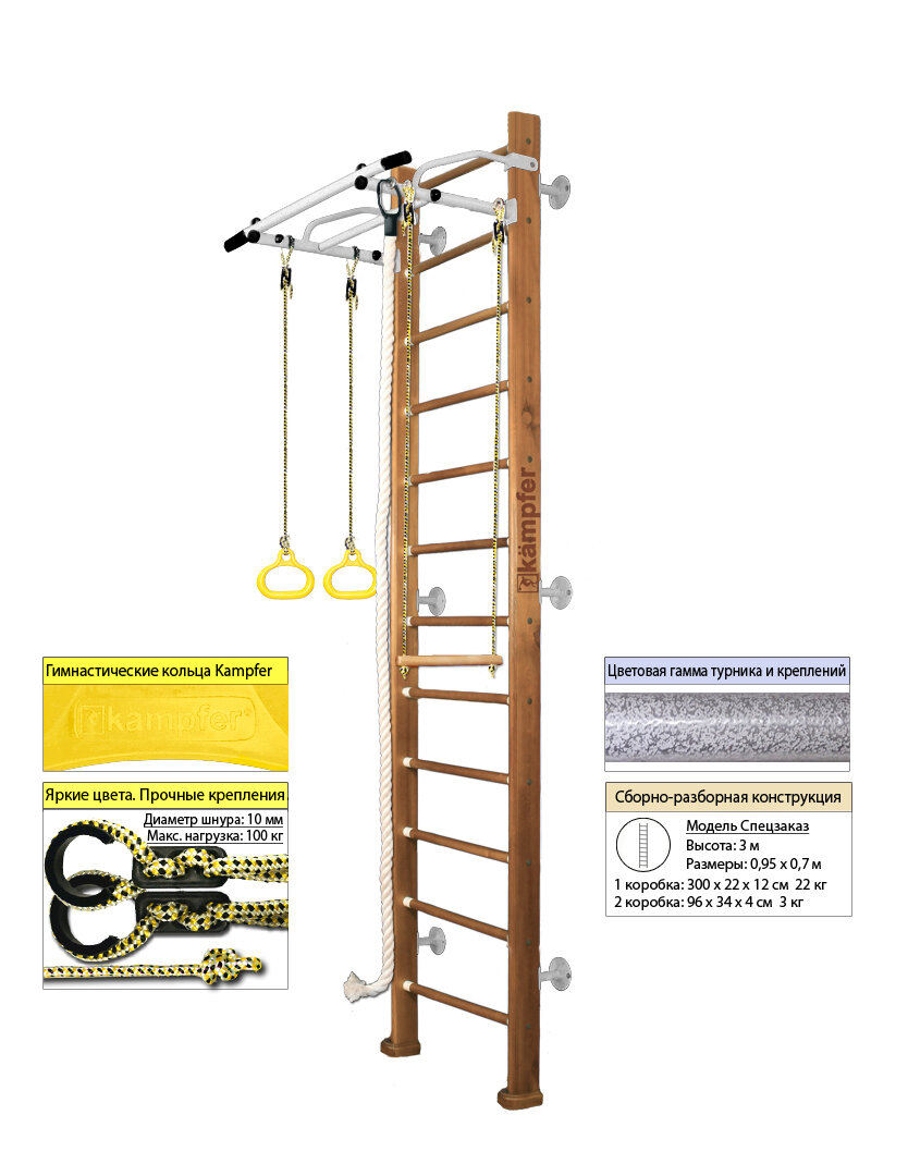 Шведская стенка Kampfer Helena Wall (№2 Ореховый Высота 3 м белый антик турник) интересное:
