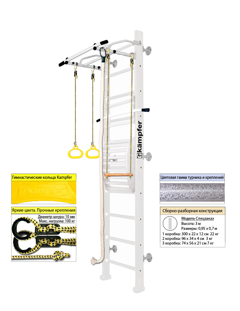 Шведская стенка Kampfer Helena Maxi Wall (№6 Жемчужный Высота 3 м белый антик турник) интересное: