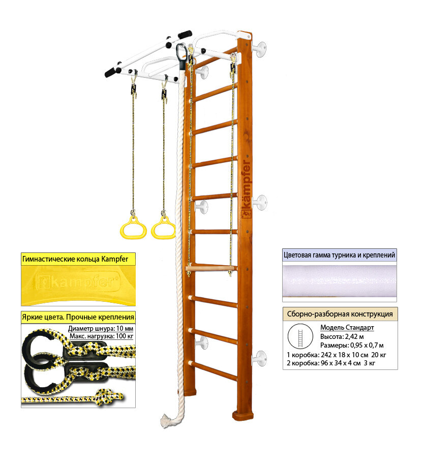 Шведская стенка Kampfer Helena Wall №2 Ореховый Стандарт белый турник