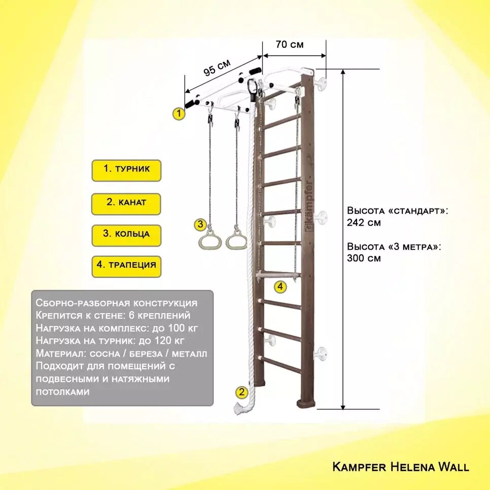 Шведская стенка Kampfer Helena Wall c матом №6, №2 Ореховый Стандарт белый турник c матом №6 красный/желтый