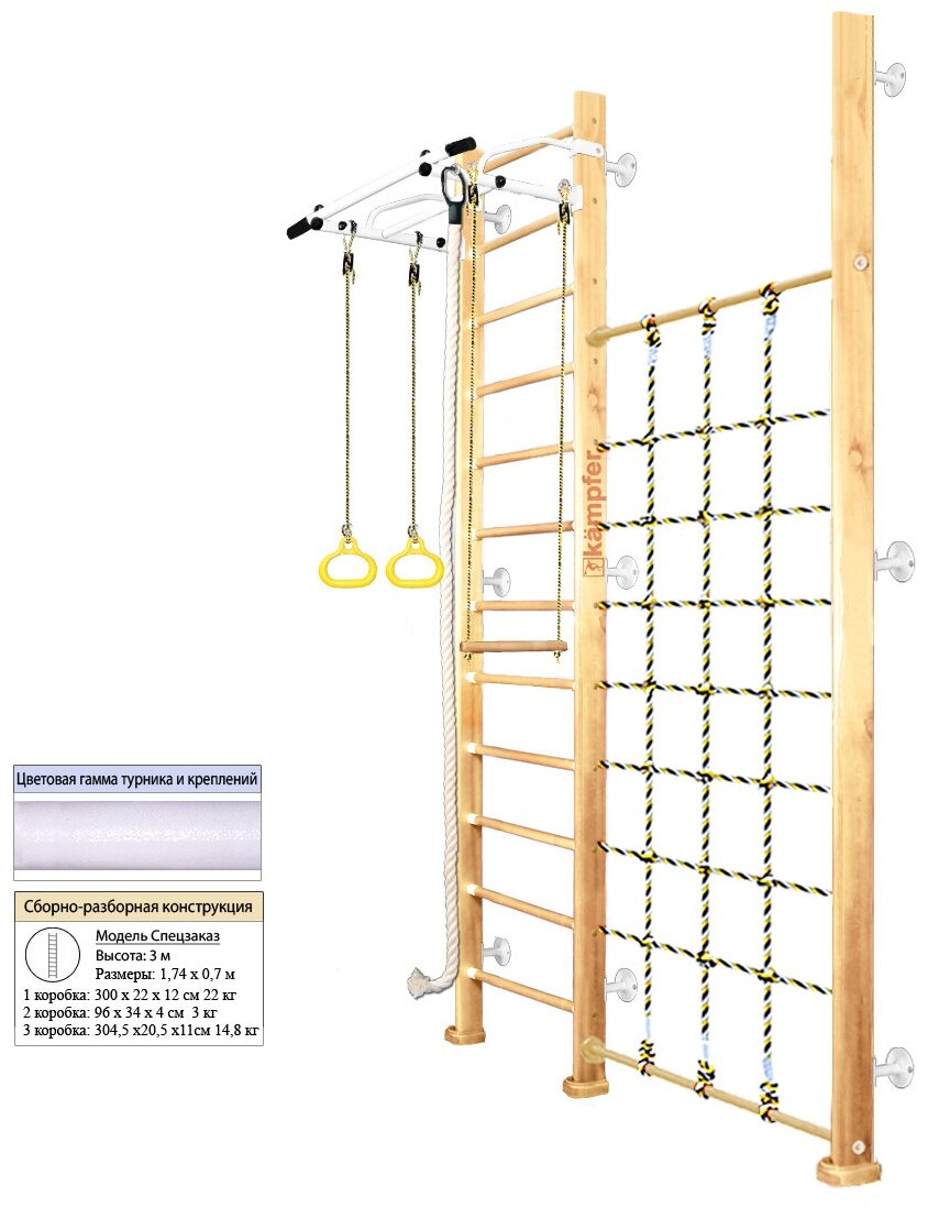 Шведская стенка Kampfer Winner Wall (№1 Натуральный Высота 3 м белый турник) интересное: