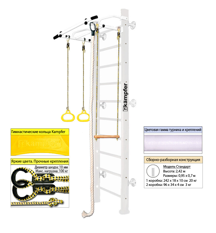 Шведская стенка Kampfer Helena Wall (№6 Жемчужный Стандарт белый турник) интересное: