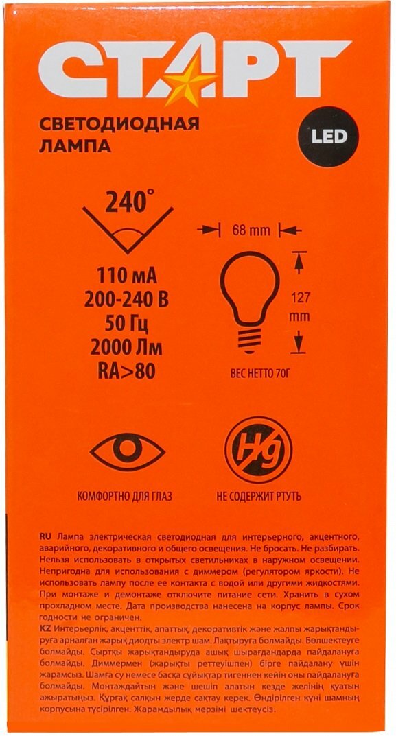 | Эквивалент лампы накаливания | 150 Вт |