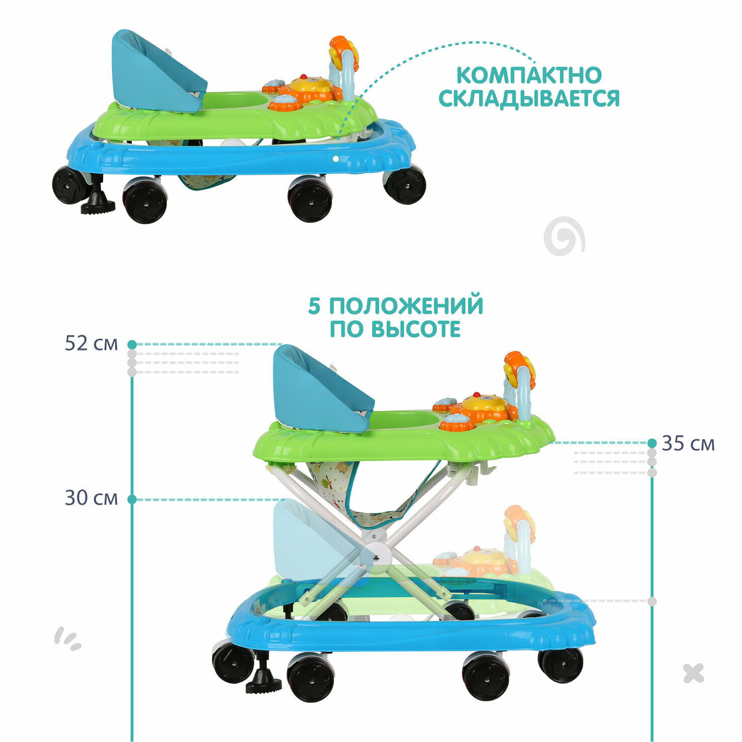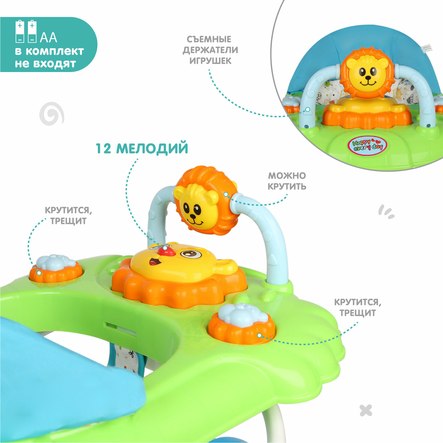 Купить Ходунки «Львенок», 8 колес, тормоз, муз., игрушки, синий-зеленый