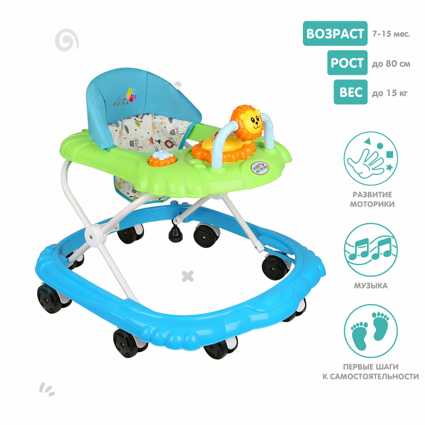 Alis Ходунки «Львенок», 8 колес, тормоз, муз., игрушки, синий-зеленый