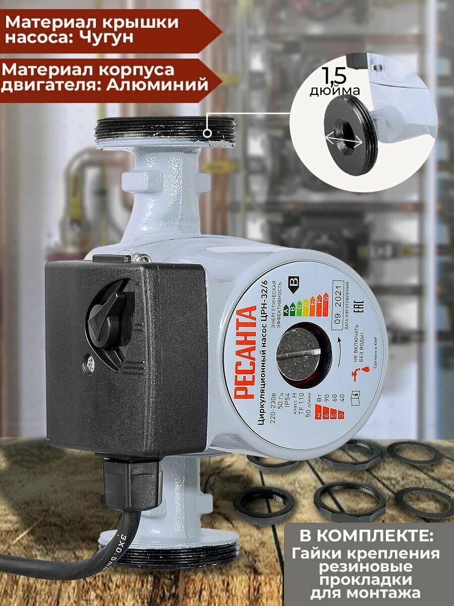 Циркуляционный насос ЦРН-32/4 Ресанта (72 Вт, напор - 4 м, 3 режима) для системы отопления, для дома и дачи