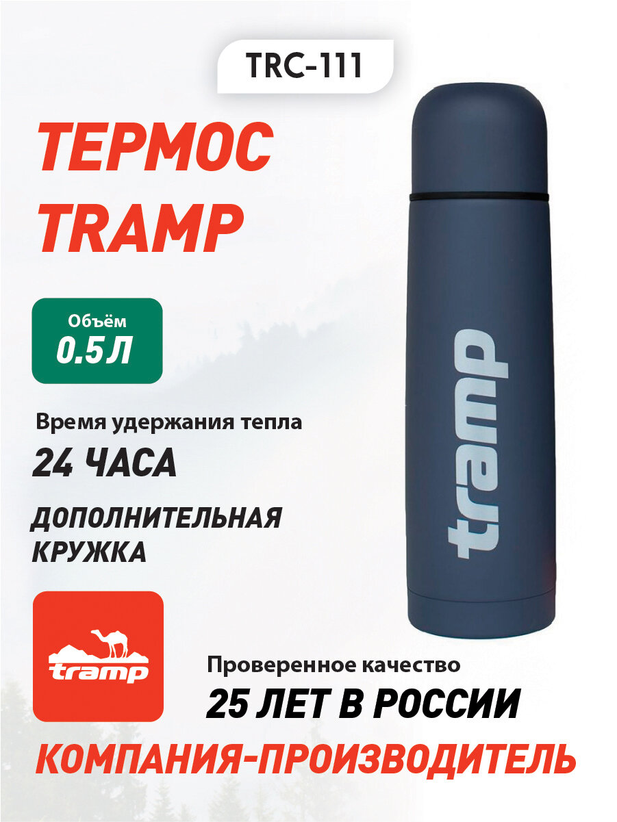 Термос Tramp TRC-111, 0.5 л, Basic, цвет: серый