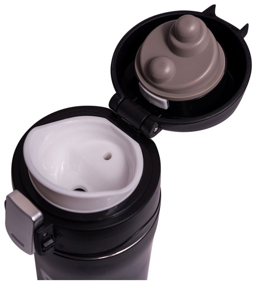 | Минусы: | Кнопка, которой открывается крышка, находится точно перед местом термоса, к которой прикладываются губы. Использовать можно, но не удобно. Покрытие термоса легко царапается |