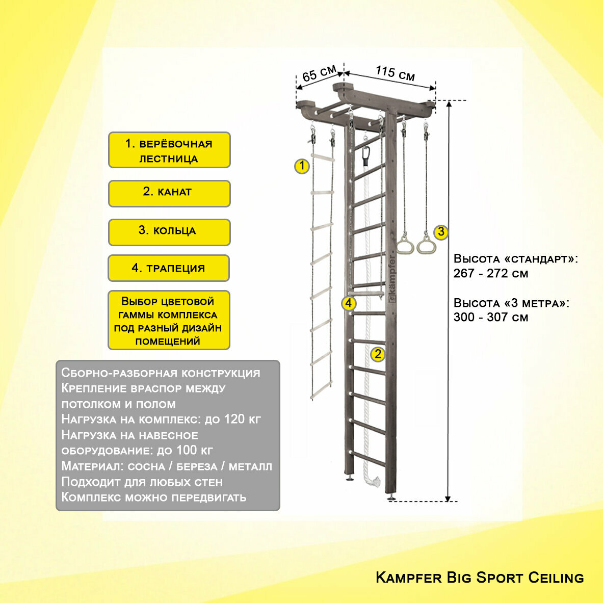 Шведская стенка Kampfer Big Sport Ceiling, №2 Ореховый Стандарт интересное: