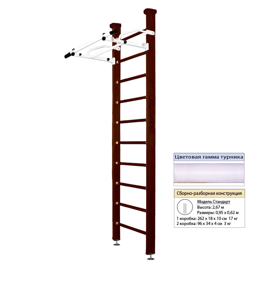 Шведская стенка Kampfer Swedish Ceiling (№5 Шоколадный Стандарт белый турник) интересное: