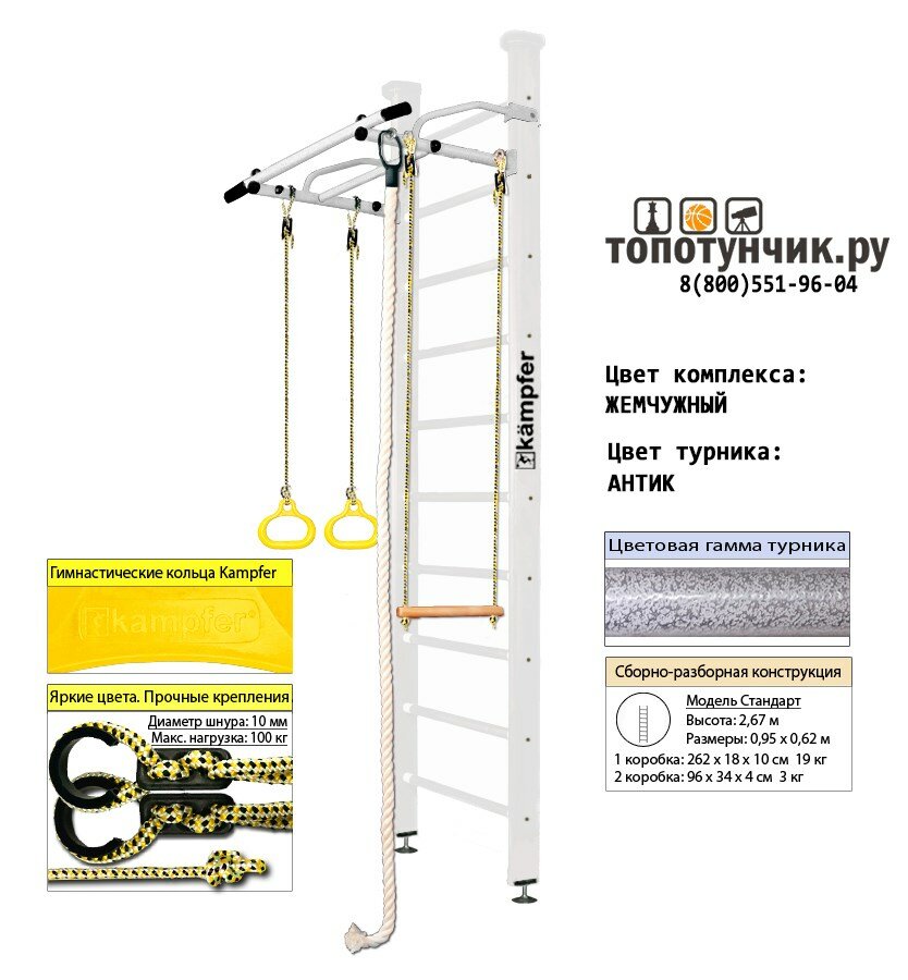 Kampfer "Helena Ceiling" спортивно-игровой комплекс Жемчужный/Антик турник интересное: