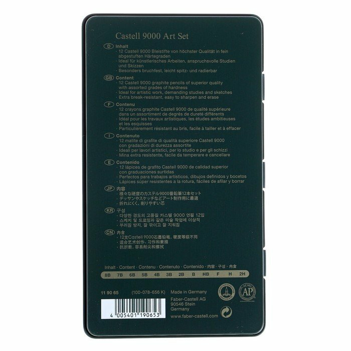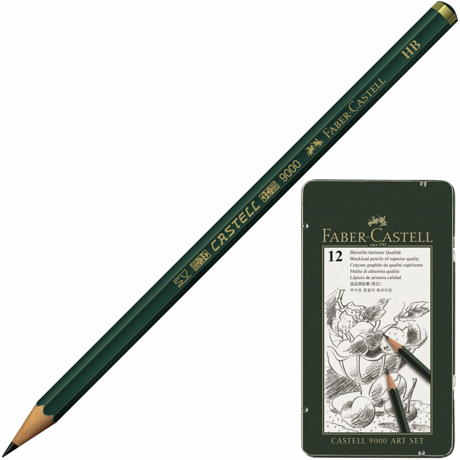 Карандаши чернографитные FABER-CASTELL, набор 12 шт., "Castell 9000 Art Set", 2H-8B, металлическая коробка, 119065, 180938