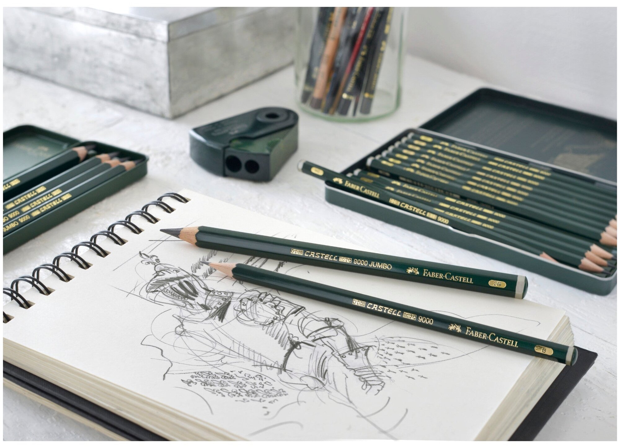 Карандаши чернографитные FABER-CASTELL, комплект 2 шт., набор 12 шт., "Castell 9000 Art Set", 2H-8B, металлическая коробка, 119065