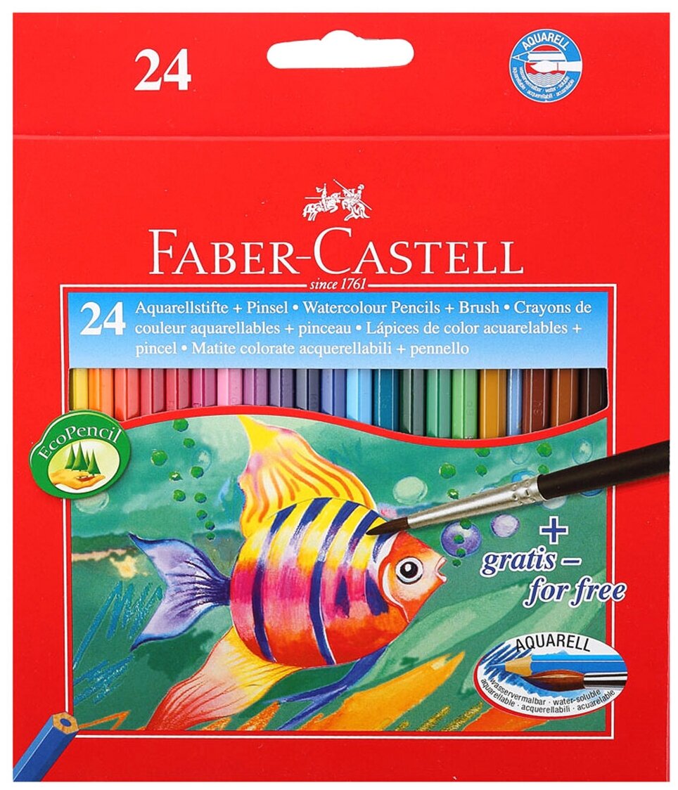 Карандаши акварельные 24 цвета Faber-Castell Рыбки (L=175мм, D=7мм, d=3мм, 6гр) + кисть, картонная упаковка (114425)