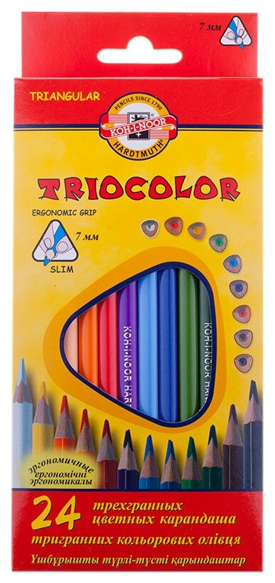 Карандаши цветные KOH-I-NOOR "Triocolor", 24 цвета, трехгранные, грифель 3,2 мм (3134024004KSRU)