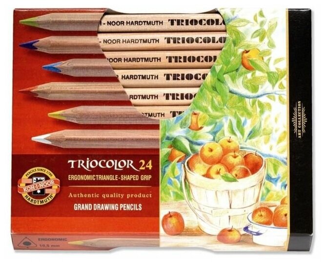 Карандаши цветные KOH-I-NOOR "Triocolor", 24 цвета, трехгранные, грифель 3,2 мм (3134024004KSRU)