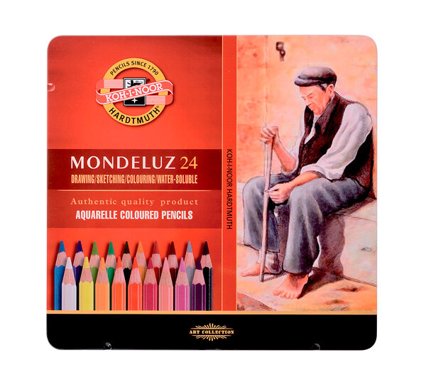 Набор акварельных карандашей Mondeluz Koh-i-noor, 24 цвета, в жестяном пенале