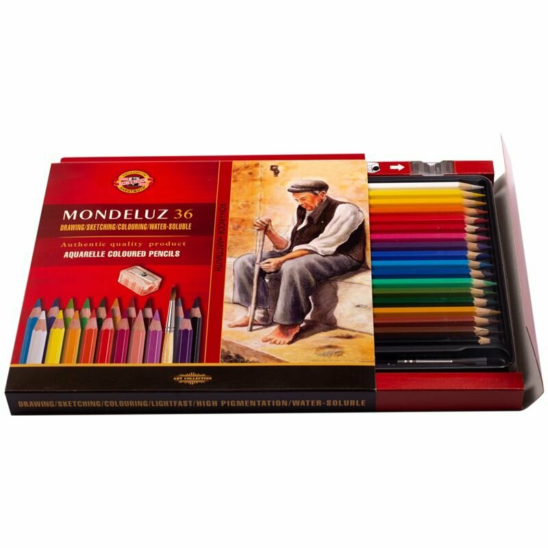 Акварельные карандаши KOH-I-NOOR Набор карандашей акв. худож. "Mondeluz" KOH-I-NOOR, 36цв., кисти, точилка (картон. коробка)