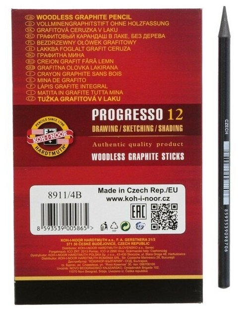 Koh-I-Noor Набор карандашей цельнографитовых в лаке Koh-I-Noor PROGRESSO 8911, 4В, 12 штук в наборе интересное: