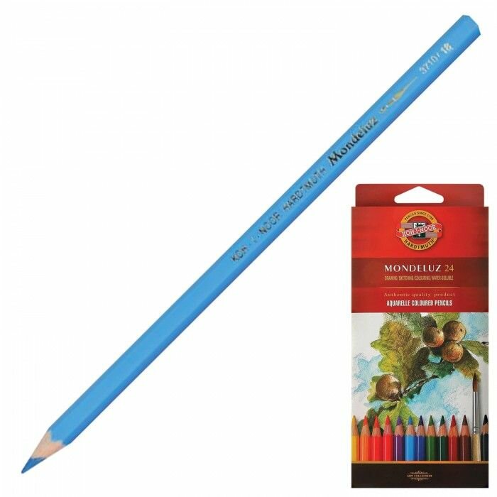 Koh-i-Noor Карандаши цветные акварельные художественные Mondeluz, 24 цвета, 3,8 мм, заточенные, 3718