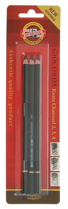 Купить Уголь в карандаше 4.2 мм, набор 3 штуки, Koh-I-Noor GIOCONDA 8811, №,2,3,4 (искусственный), блистер