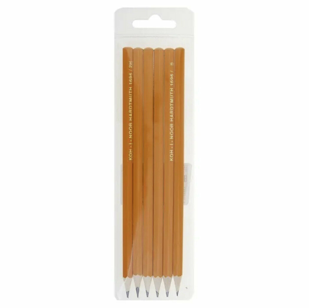 Карандаши чернографитные KOH-I-NOOR, набор 6 шт., 2Н, Н, НВ-2, В, 2В, пластиковая упаковка, европодвес, 1696006041TE
