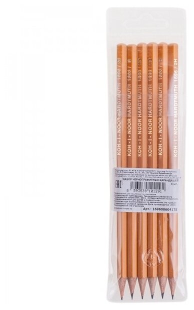 Карандаши чернографитные KOH-I-NOOR, набор 6 шт., 2Н, Н, НВ-2, В, 2В, пластиковая упаковка