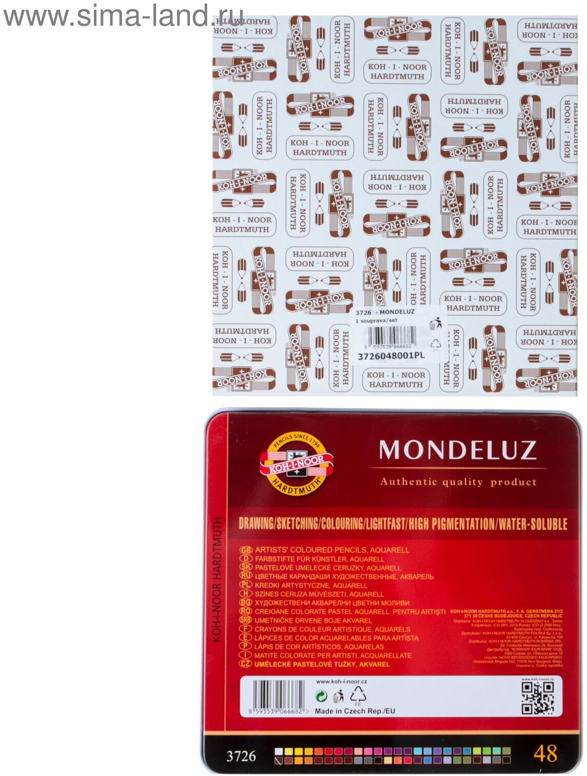Карандаши акварельные набор 48 цветов, Koh-I-Noor Mondeluz 3726, в металлическом пенале интересное:
