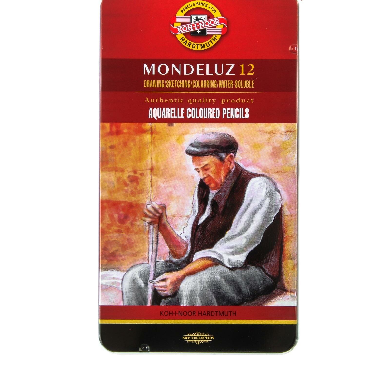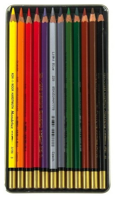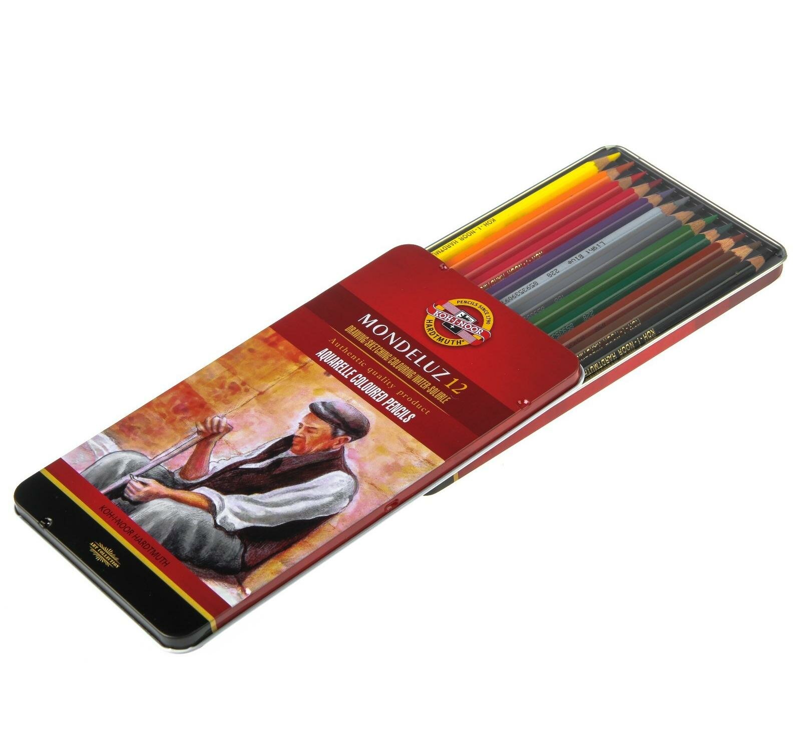 Карандаши акварельные набор 12 цветов, Koh-I-Noor Mondeluz 3722, в металлическом пенале интересное: