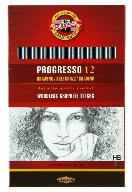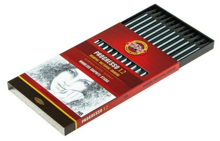 Купить Набор карандашей цельнографитовых в лаке Koh-I-Noor Progresso 8911, 6В, 12 штук в наборе Koh-I-Noor .