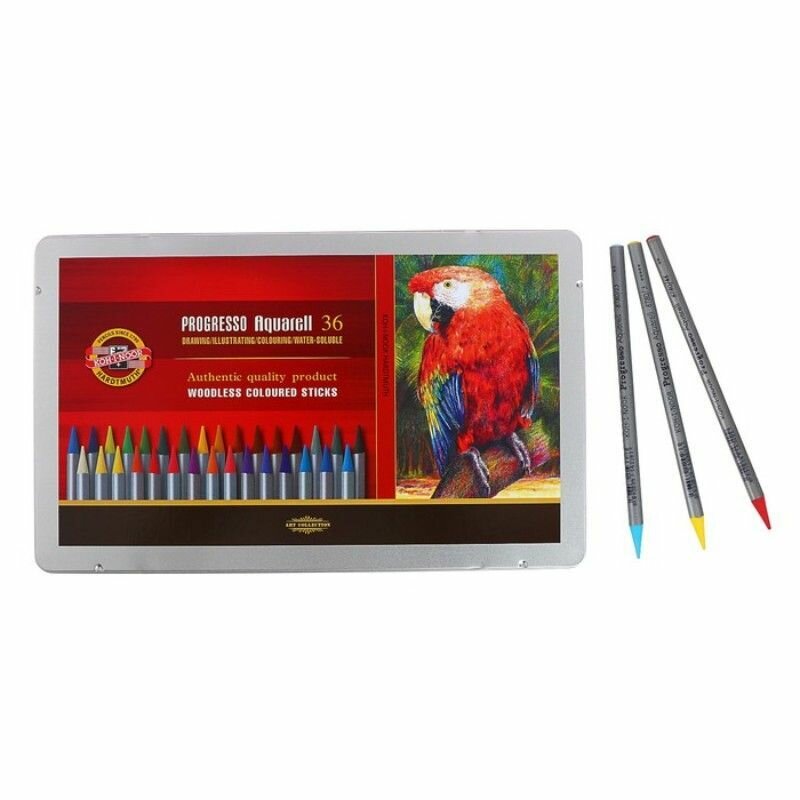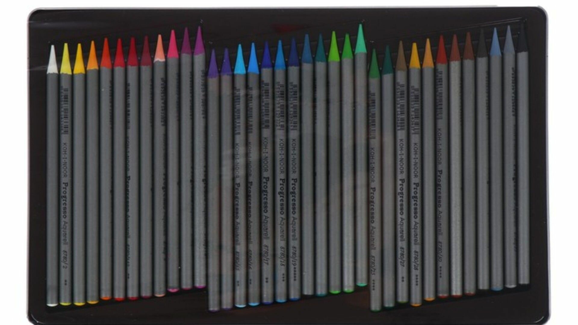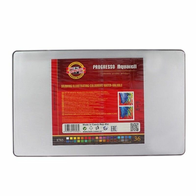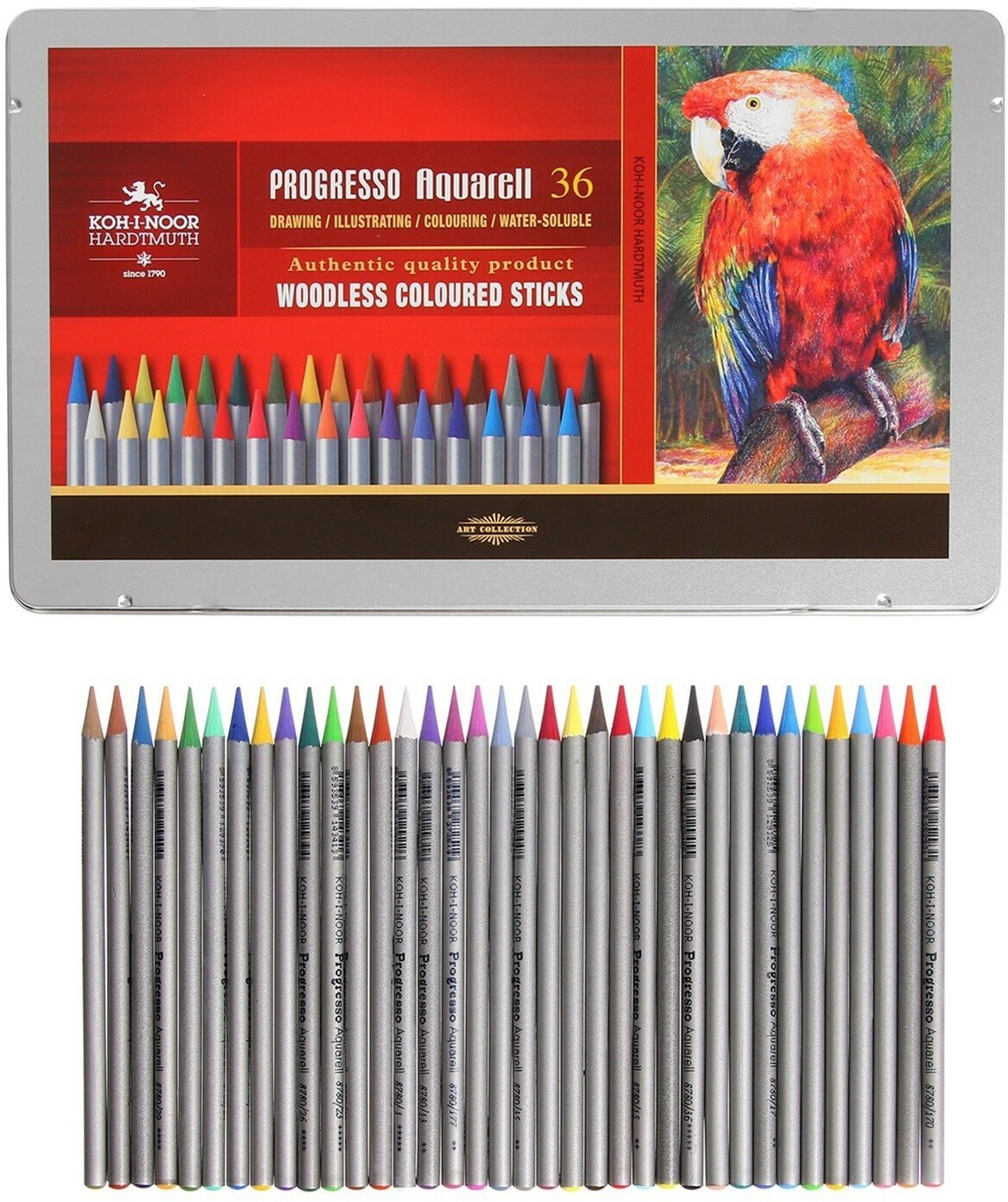 Карандаши акварельные набор 36 цветов, цельнографитовые Koh-I-Noor Progresso Aquarell, в металлическом пенале интересное: