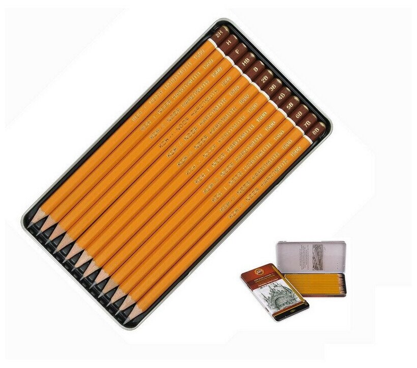 Набор карандашей Набор чернографитных карандашей KOH-I-NOOR 1502/II 8B-2H (12 штук)