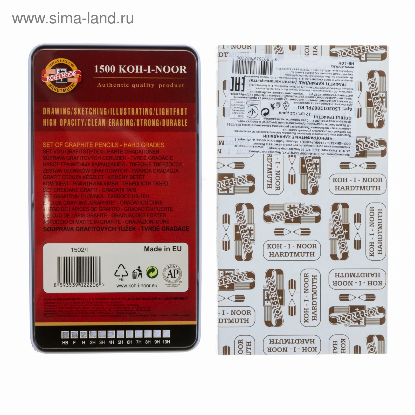 Купить Набор карандашей чернографитных разной твердости 12 штук Koh-I-Noor 1500, HB-10H, в металлическом пенале