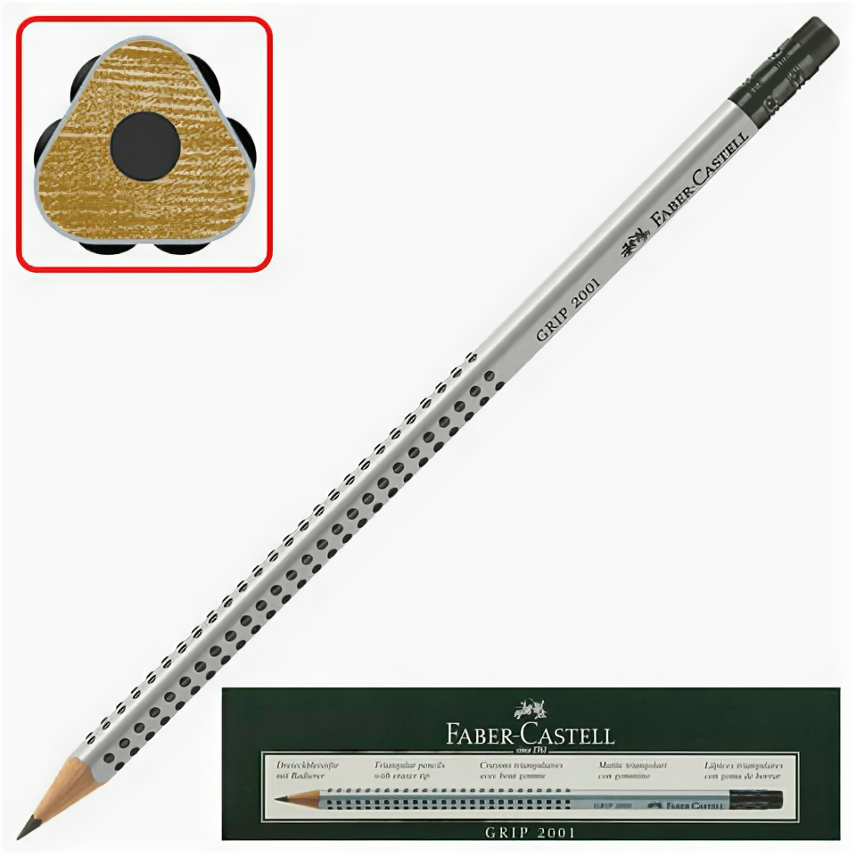 Карандаш чернографитный FABER-CASTELL, 1 шт., "Grip 2001", HB, трехгранный, с резинкой, 117200 (цена за 1 ед.товара) интересное: