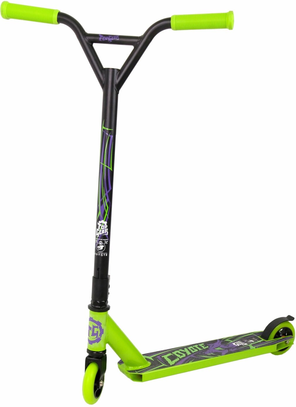 Купить Самокат TOPGEAR для трюков Coyote 2-х кол.,алюм.комби,PU кол.110мм,ручки TPR,подшипн.ABEC-9,алюм.обода,63*10*83см,г/п до 100кг,черн.-зелен.