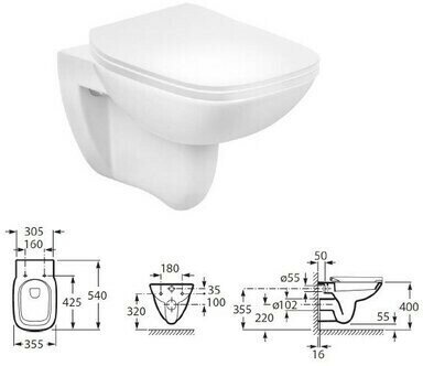 Debba, комплект унитаза с инсталляцией, глубина унитаза 54см, без клавиши в комплекте, с микролифтом, безободковый, быстросъемное, сиденье тонкое, арт