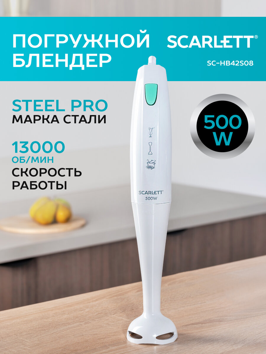 Блендер погружной Scarlett SC-HB42S08, 500Вт, пластиковая нога, 1 скорость