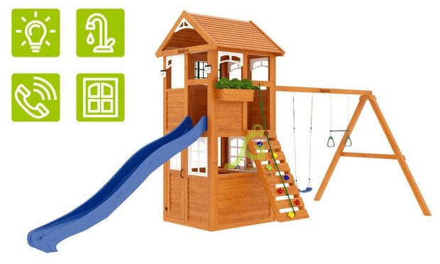 | В комплекте | гимнастические кольца, качели, канат, лестница, песочница, скалолазная стенка, трапеция, турник |