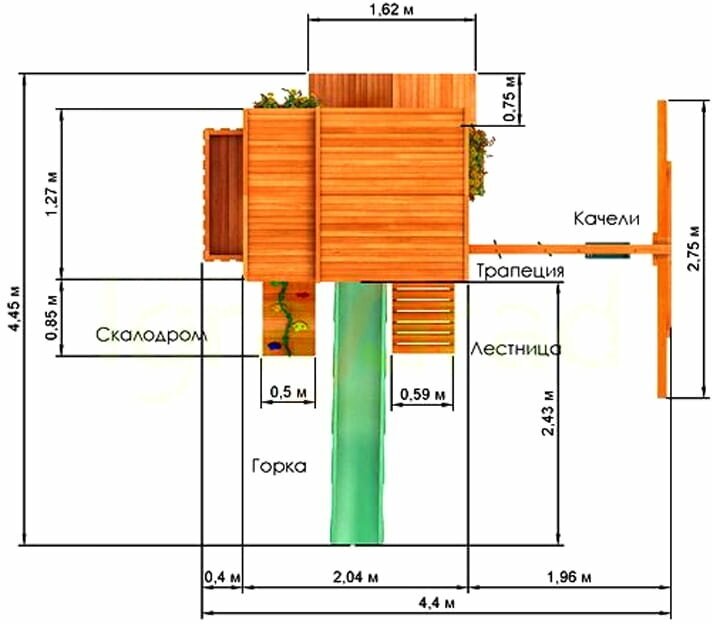 | Дополнительная информация | доска для игры в Крестики-нолики; количество горок: 1; количество качелей: 1 |