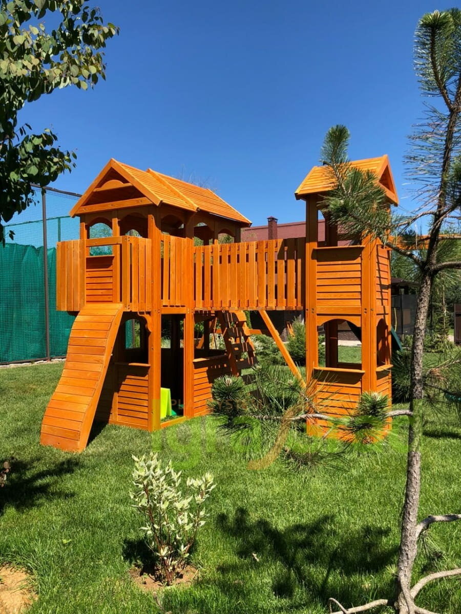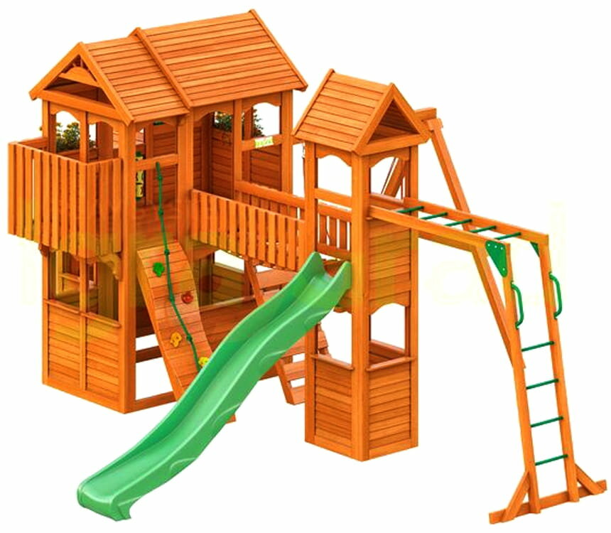| Комплектация | - закрытый двухуровневый игровой домик с дверью и деревянной крышей; - увеличенный первый этаж с доп. двускатной крышей; - дополнительный двухуровневый домик с деревянной крышей; - балкон; - деревянное кашпо; - волновая горка S-line 3 м; - рукоход; - подвесной мост; - деревянная лестница; - скалодром; - канат; - качельный модуль; - качели-гнездо 100 см; - доска для игры в “Крестики-нолики”; - пластиковое окошко; - комплект фурнитуры; - руководство по сборке. |