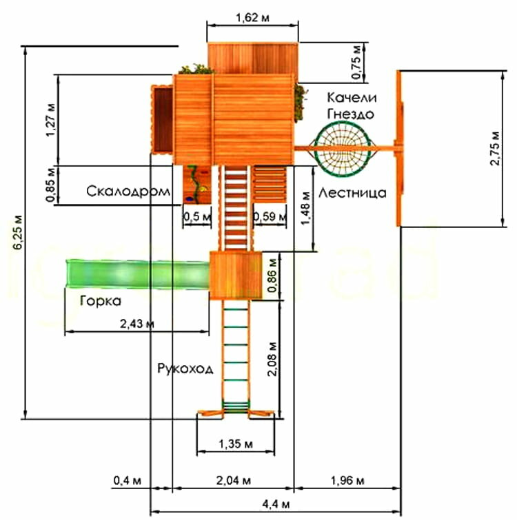 | Дополнительная информация | количество горок: 1; количество качелей: 1 |