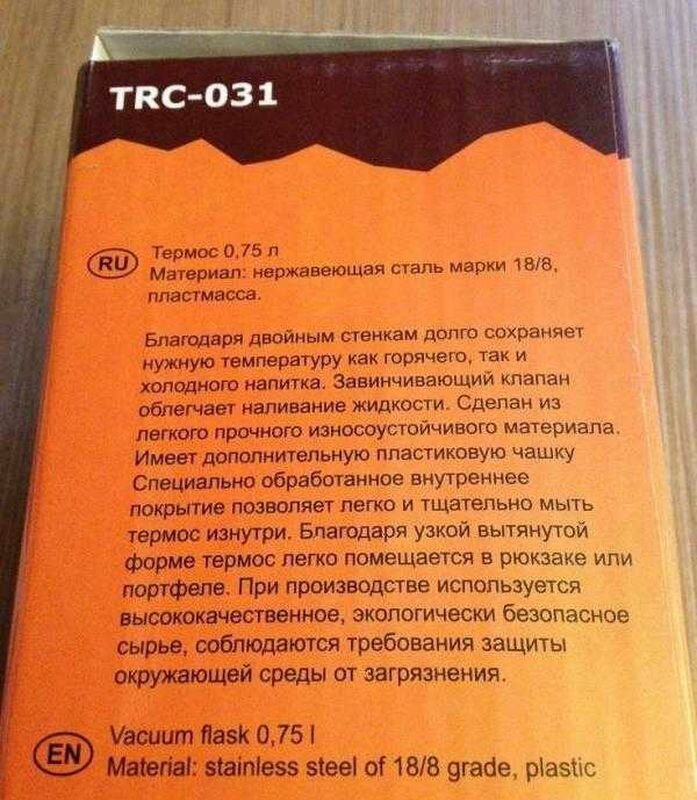 | Плюсы: | Долго хранит тепло. На улице очень холодно. 10-12 часов - вполне горячий чай. |