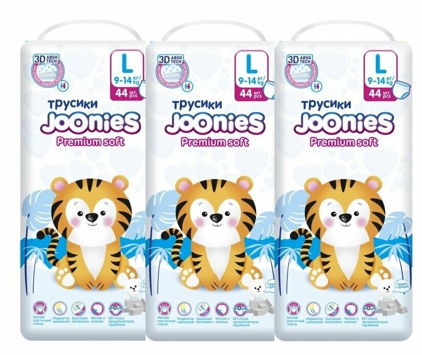 Joonies Набор трусиков Joonies premium soft L (9-14 кг) 44 шт 3 уп