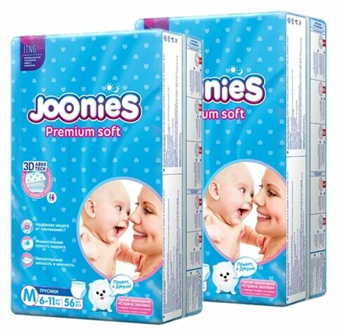 Подгузники-трусики Joonies 953214 Premium Soft M (6-11 кг) 56 шт .