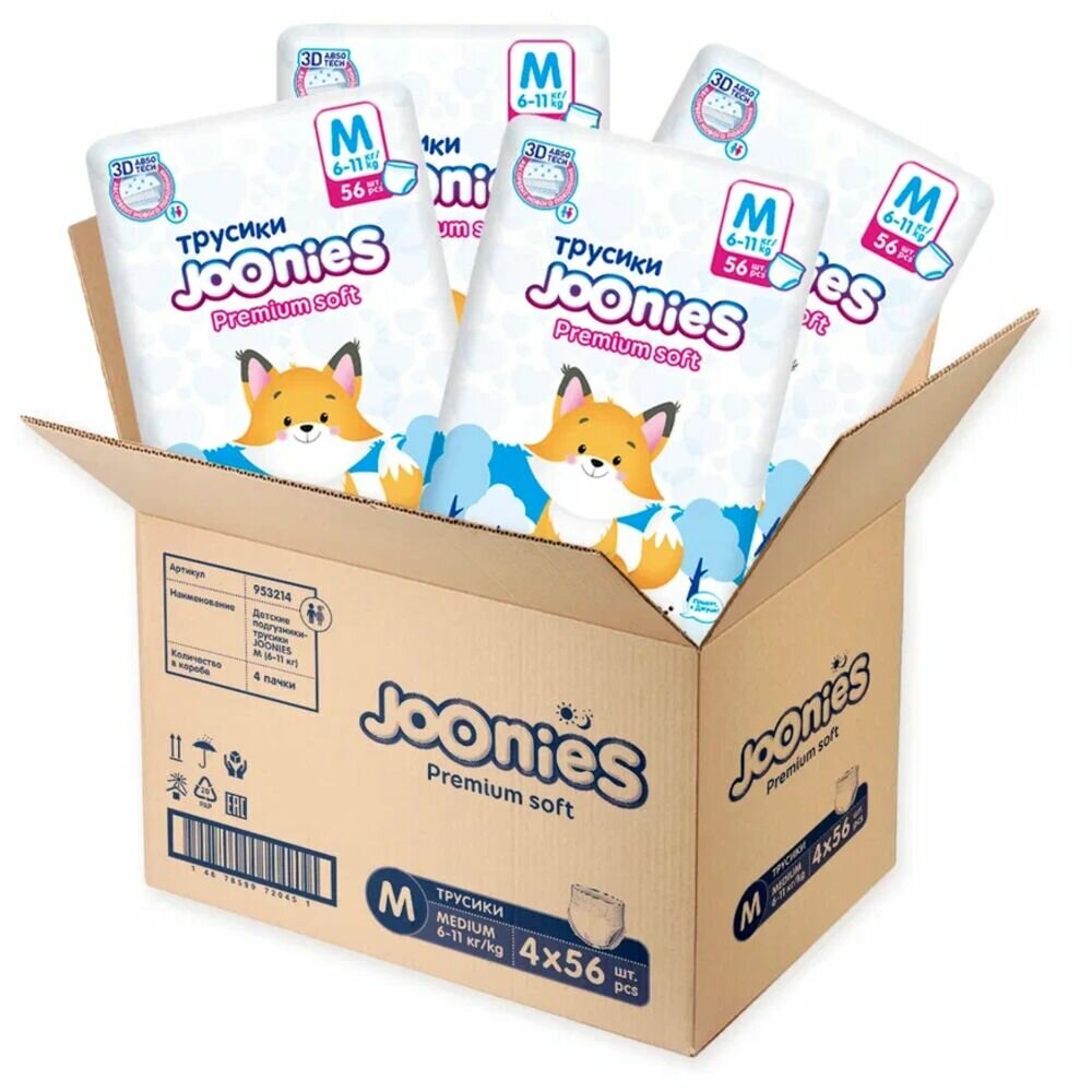 Подгузники-трусики JOONIES 953214 Premium Soft M (6-11 кг) 56 шт