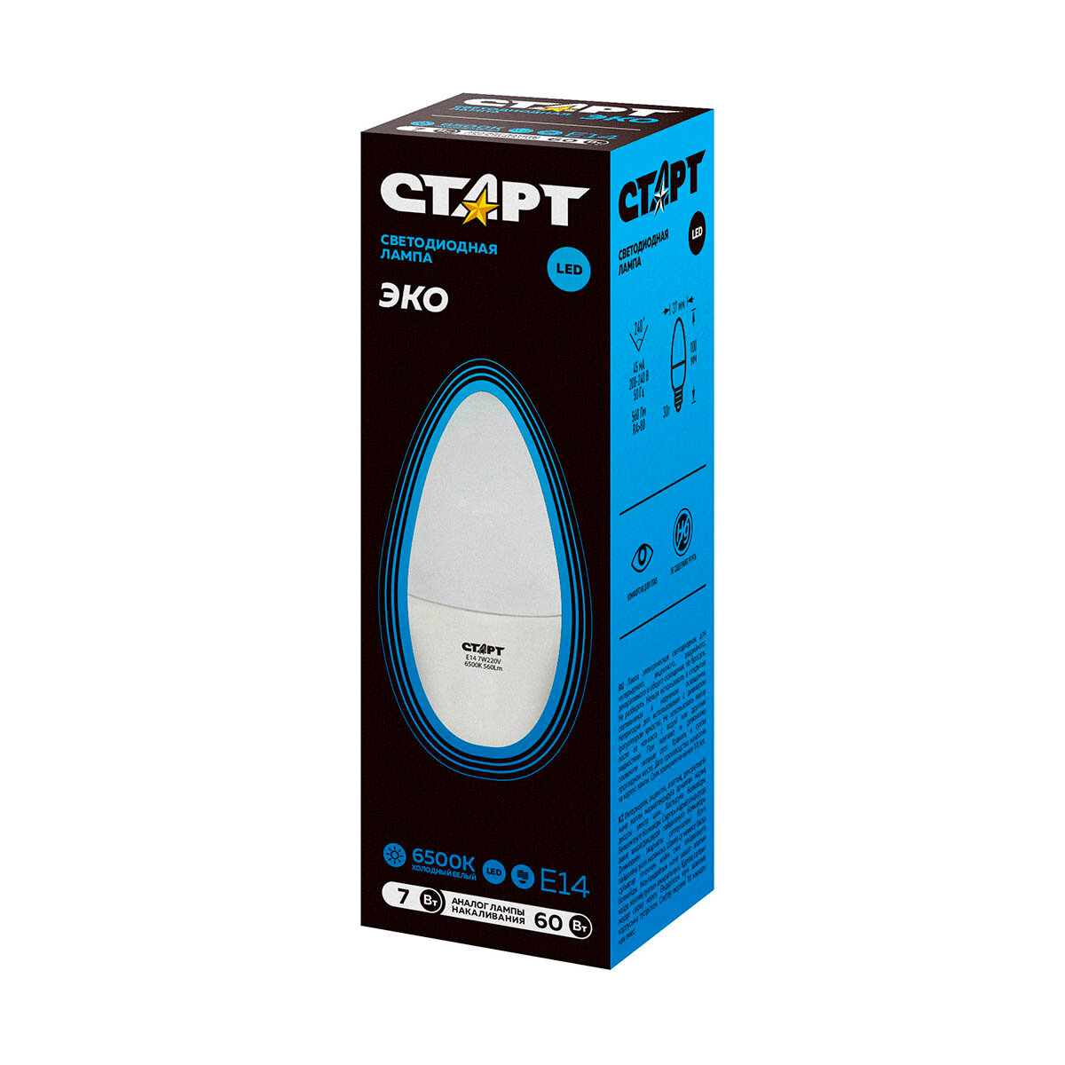 Лампа светодиодная LED Старт ECO Свеча, E14, 7 Вт, 6500 K, холодный белый свет интересное: